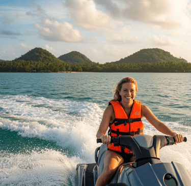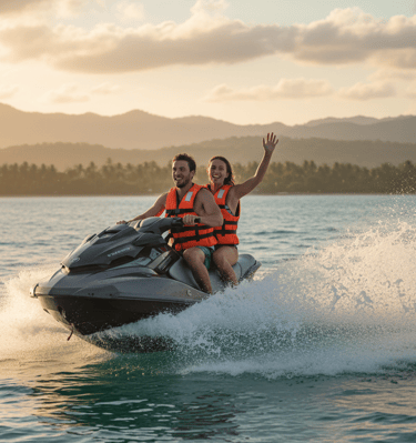Our jet ski tours take you through breathtaking landscapes, navigating mysterious mangroves, white sandy beaches, and crystal-clear waters where you can fully enjoy nature’s beauty. During the ride, you’ll visit exclusive and hidden places only accessible by sea, making this adventure truly unforgettable.
