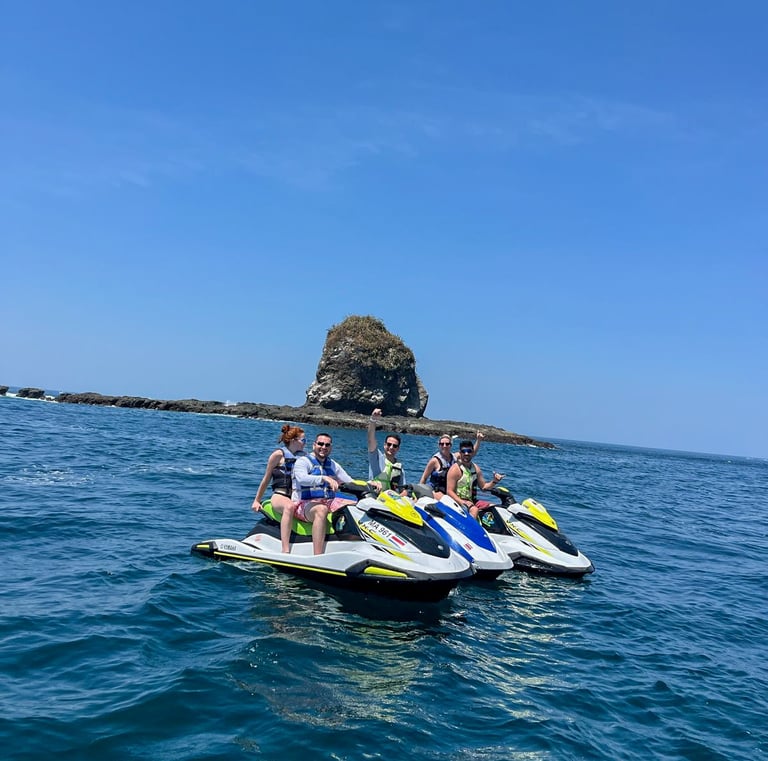 Feel the thrill and freedom riding the waves with our jet ski tours and rentals in the beautiful Papagayo Peninsula and the stunning beaches of Tamarindo and Flamingo! Whether you want to rent a jet ski by the hour to explore at your own pace, or join a guided tour to discover the best spots, we have the perfect option for you.